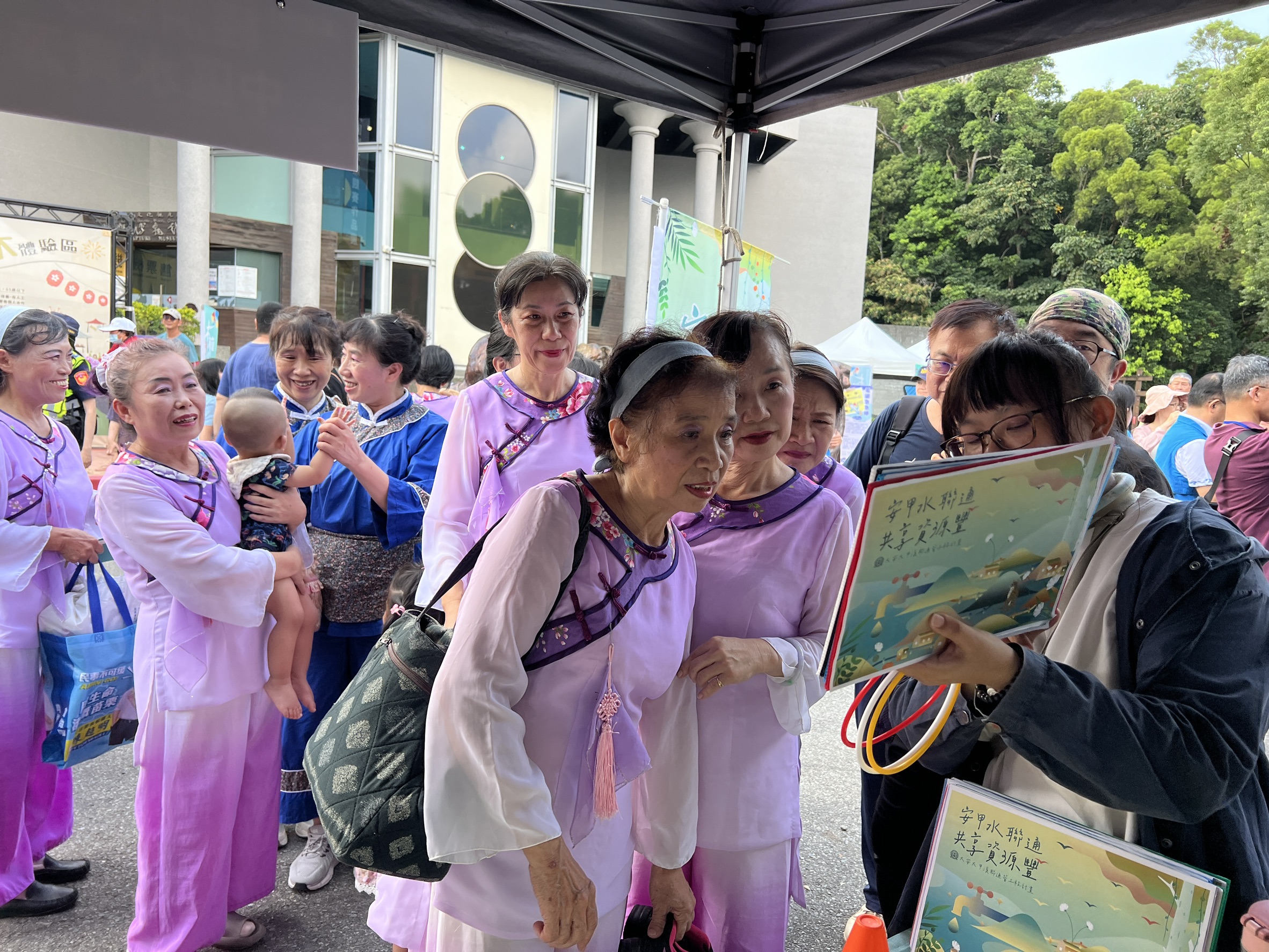 114年10月10日三義木雕藝術節活動,中區水資源分署設置「安甲水聯通 資源共享豐」水資源教育宣導攤位,向民眾介紹大安大甲溪聯通管工程計畫對中部區域水資源調度及供水穩定的重要性,吸引活動現場民眾參與,現場氣氛熱烈。