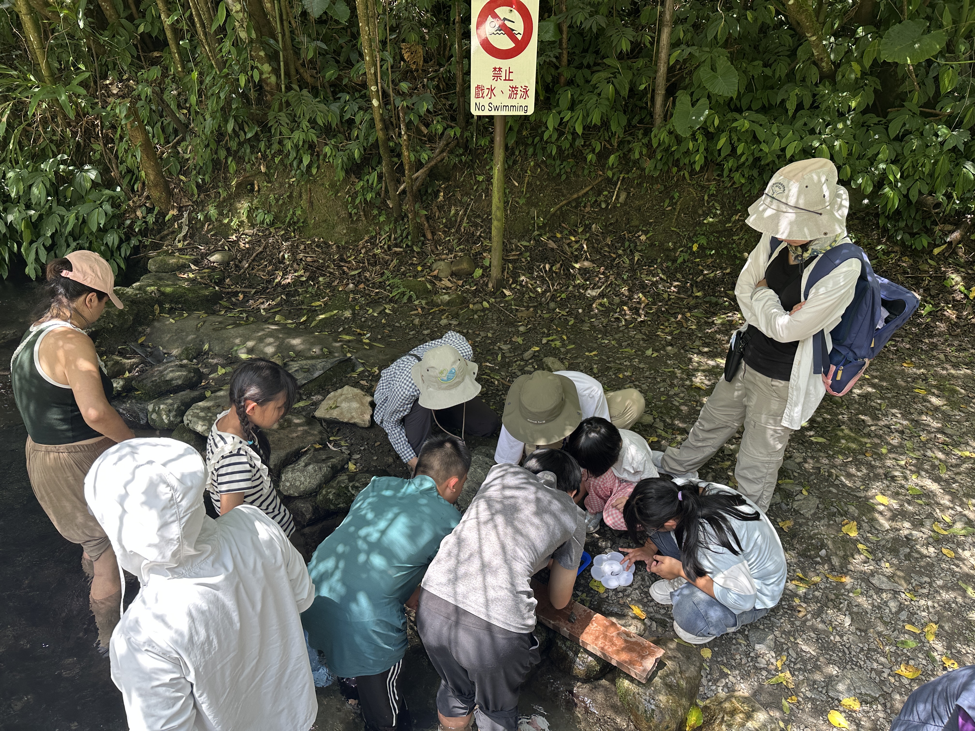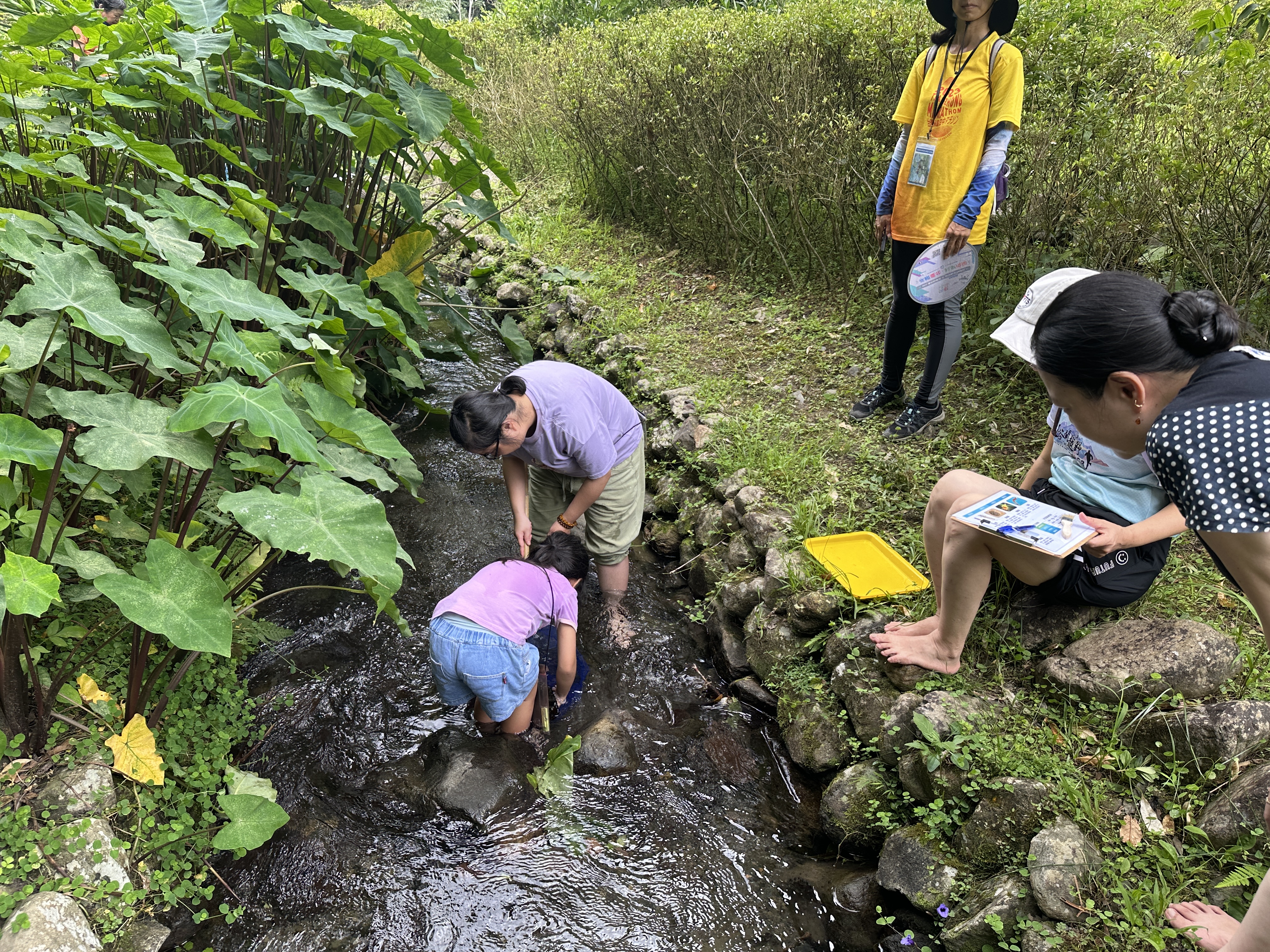 水源小偵探課程結合導覽與實作體驗,帶領學員深入臺北水源特定區,認識大羅蘭溪生態環境與水質保護機制。透過濱溪導覽與生態工法介紹,增進學員對地方文化與自然環境理解;並實際採集與觀察水生昆蟲,學習辨識水質指標生物,進而評估溪流水質,強化對水資源保育重要性的覺察。透過體驗與討論,將水源地保護內 化為個人行動,提升環境素養與公民責任。