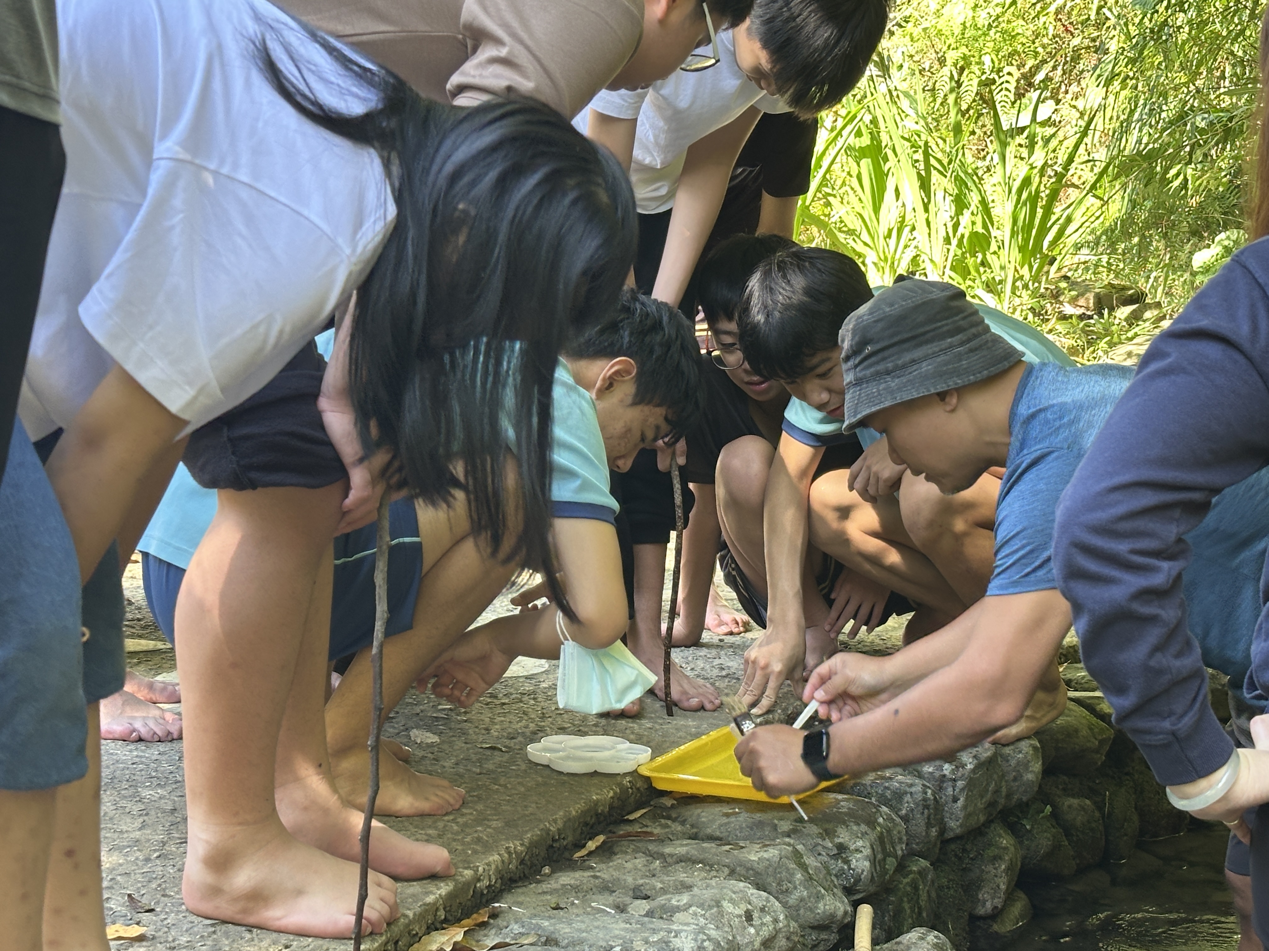 以「實作」為主要研習主題課程,如「水源小偵探」可至福山大羅蘭溪認識臺北水源特定區溪流環境,並透過水中昆蟲的觀察來了解大羅蘭溪的水質狀態,亦或是「水源地淨水器」藉由植生滯留槽盆栽製作與觀察,讓學生實際體驗水質淨化過程。