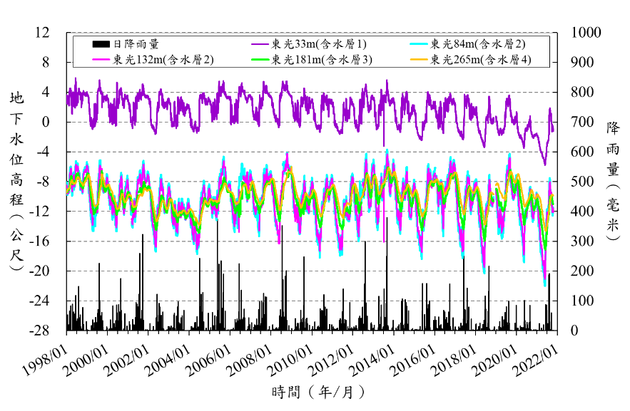 東光國小_地下水與雨量及下陷分析圖.png