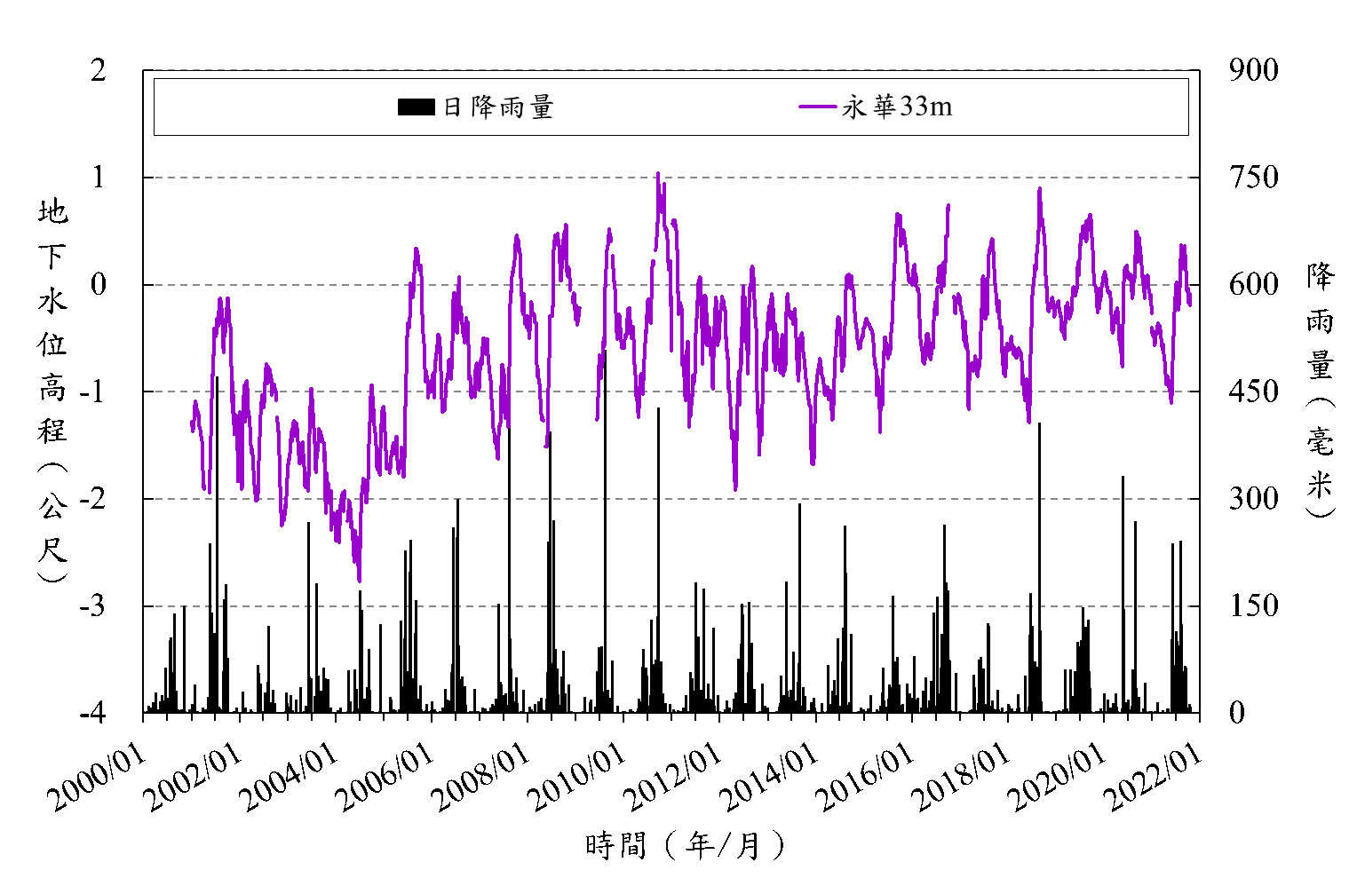 鹽田分校_地下水與雨量及下陷分析圖.png