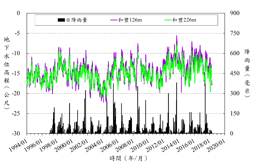 崙豐國小_地下水與雨量及下陷分析圖.png