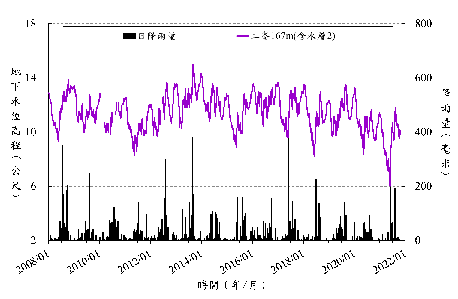 二崙國小_地下水與雨量及下陷分析圖.png